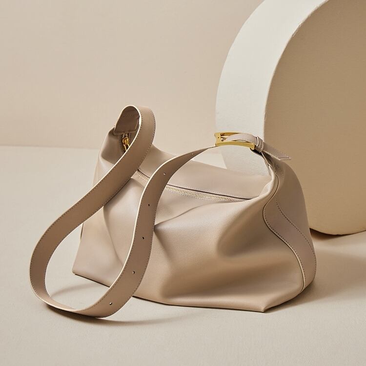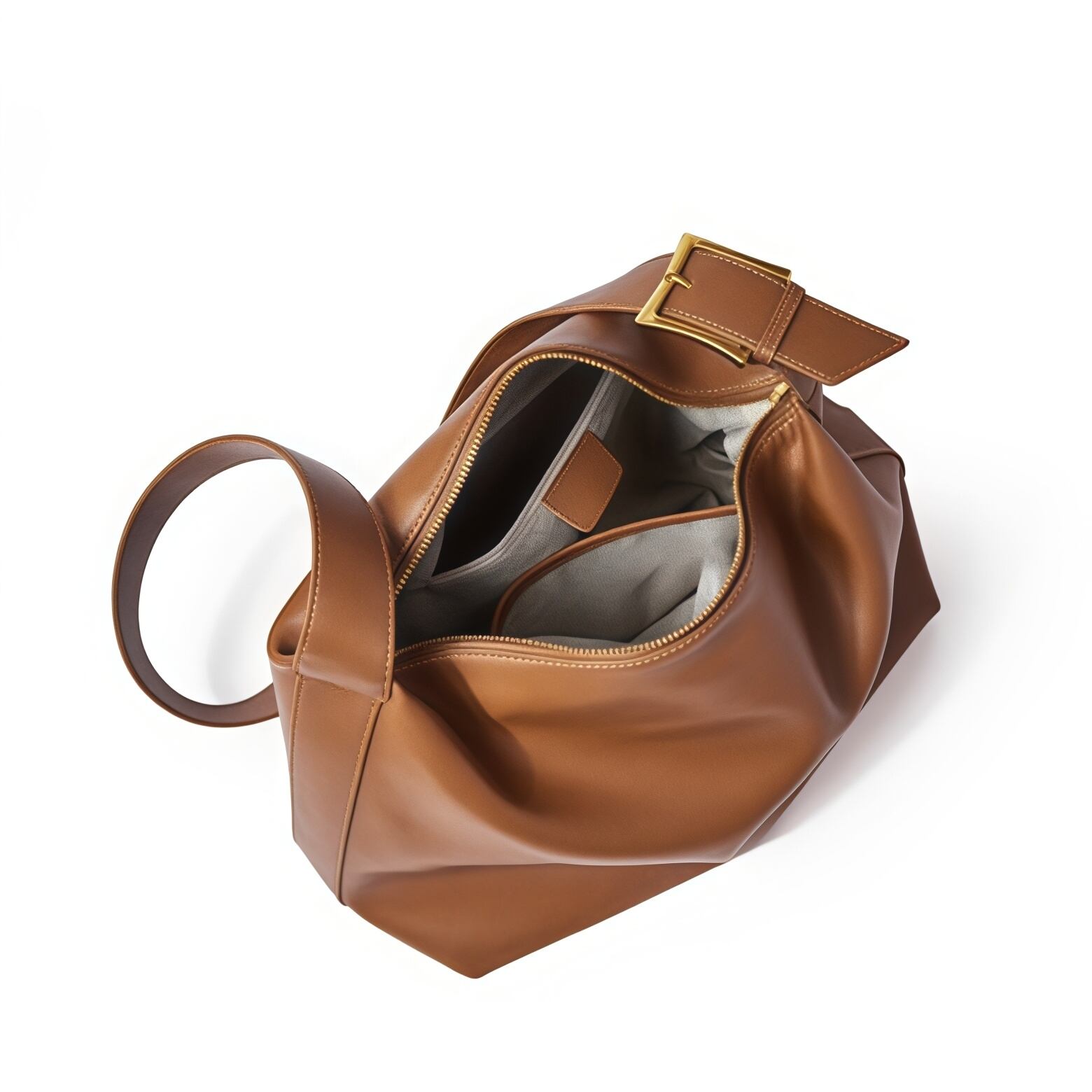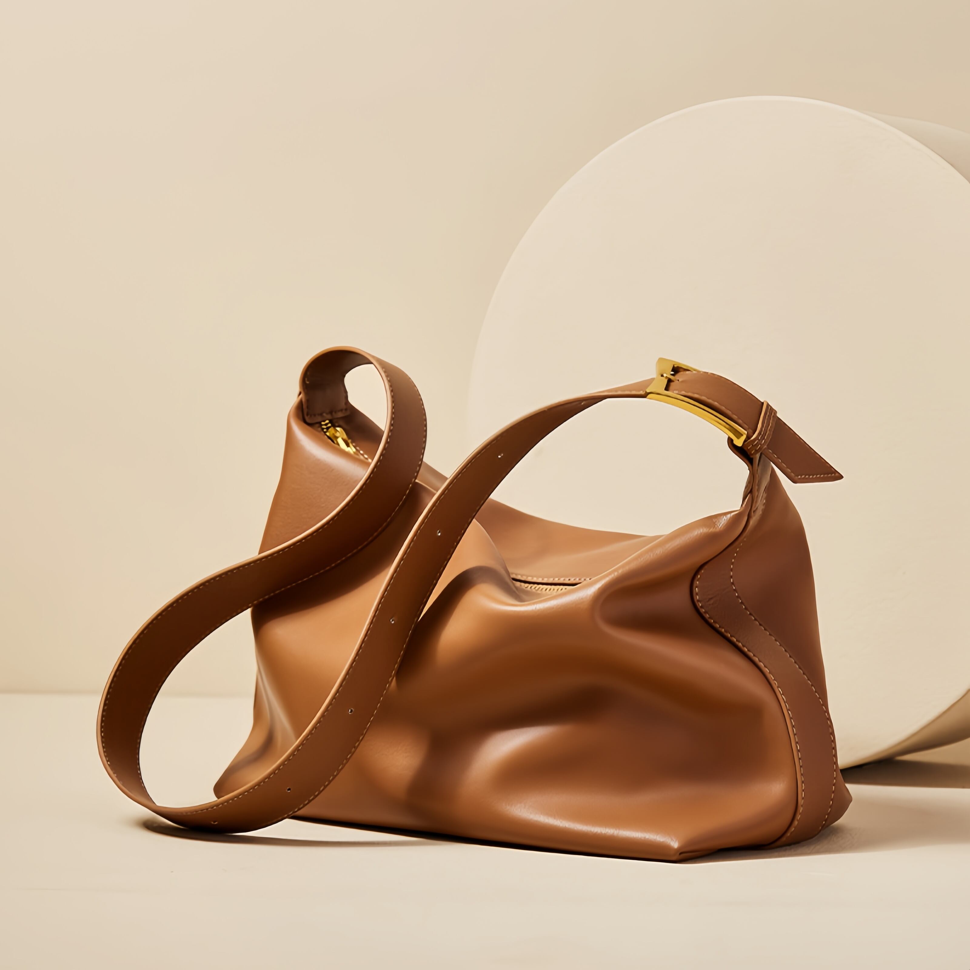 この斜ショルダーバッグは、上質な天然軟牛革を使用し、熟練した職人が丁寧に手作業で縫製しています。