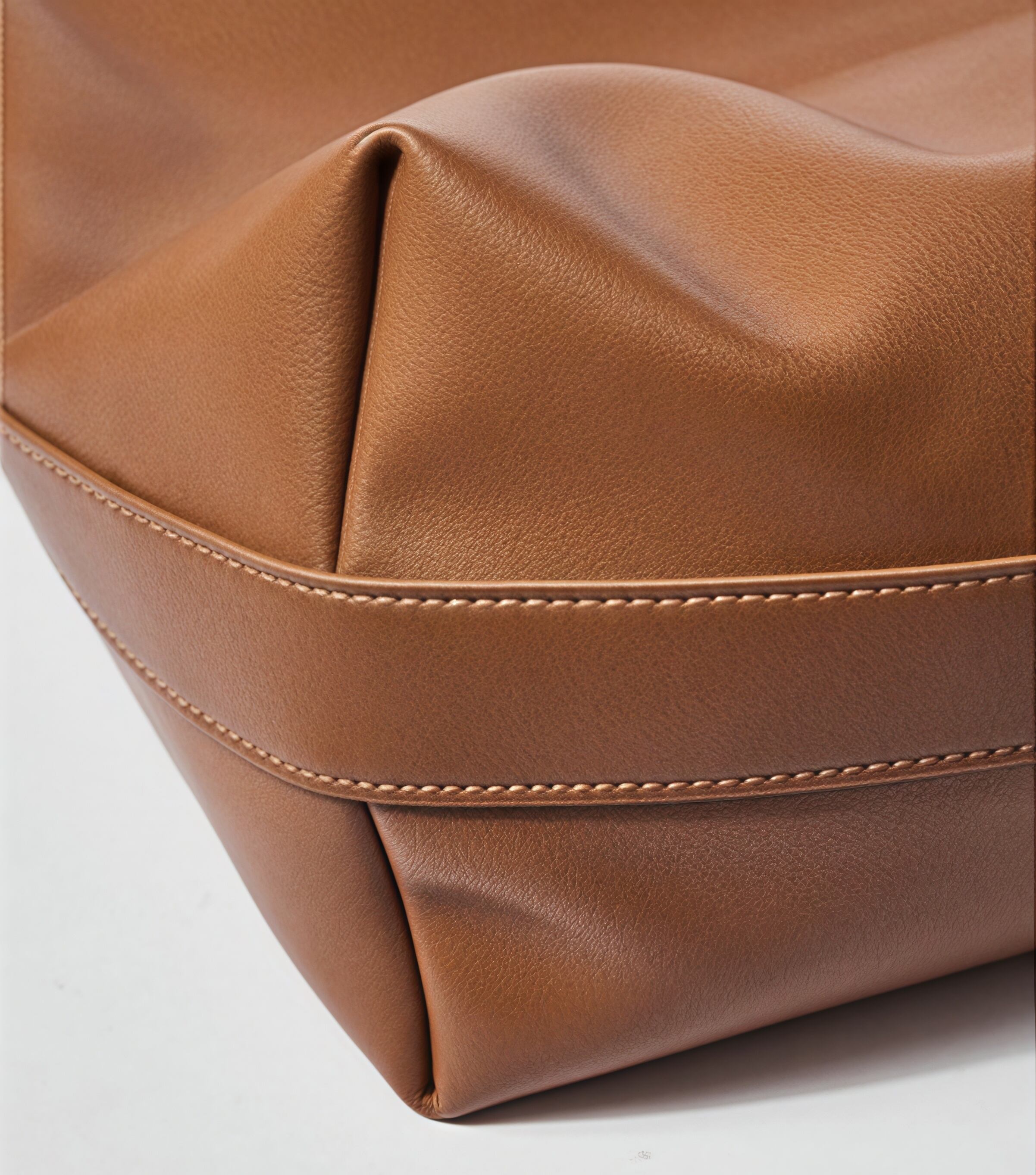 牛革の表面は、柔らかく、しかも自然な光沢を放ち、質感が際立っています。触るだけで、その高品質がわかります。