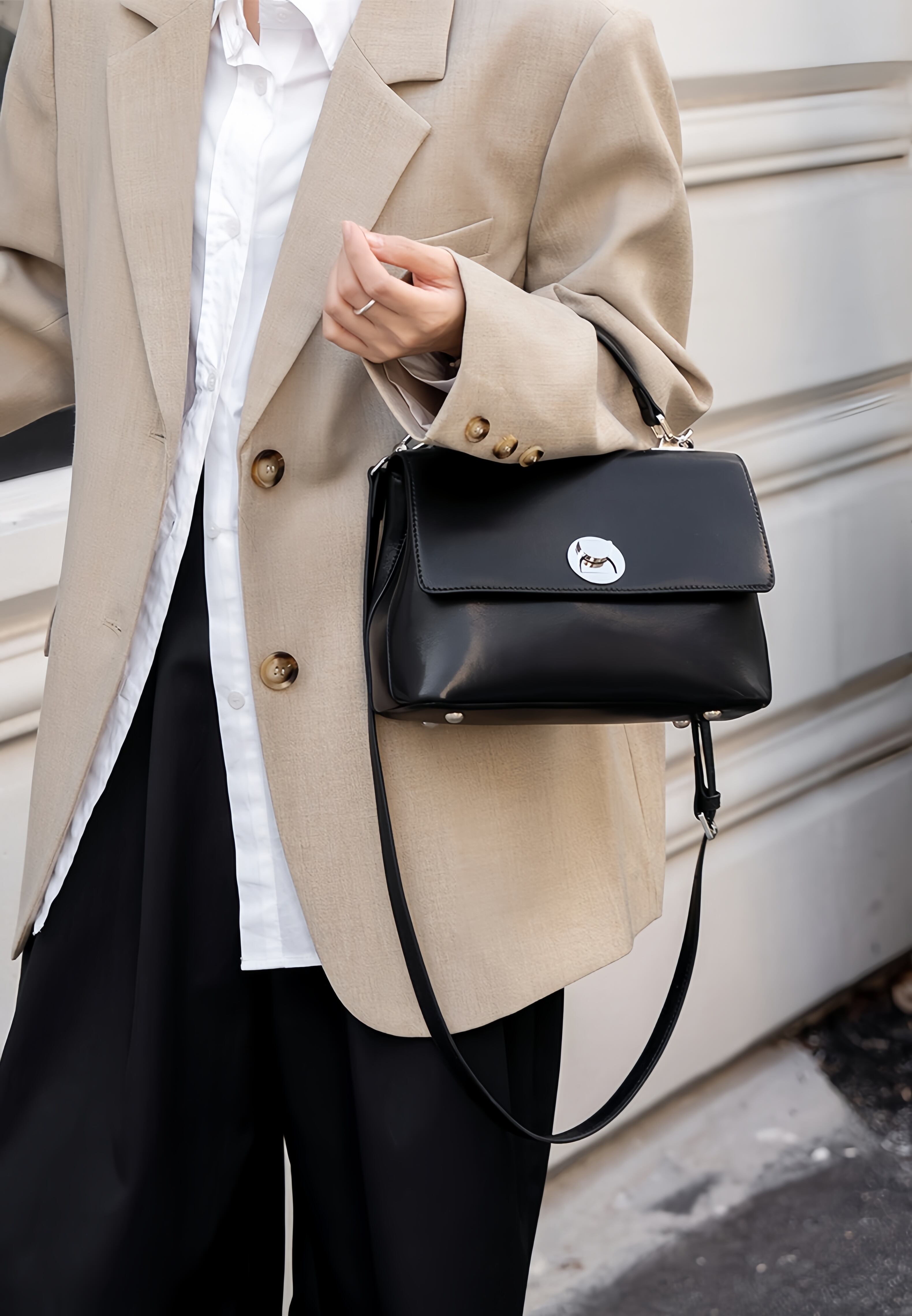 色は4種類のクラシックな色から選べます。使い続けるほど、天然牛革特有の自然な光沢が出てきて、バッグの魅力が増します。どんなスタイルにも合わせやすく、自分らしさを出せるんです。