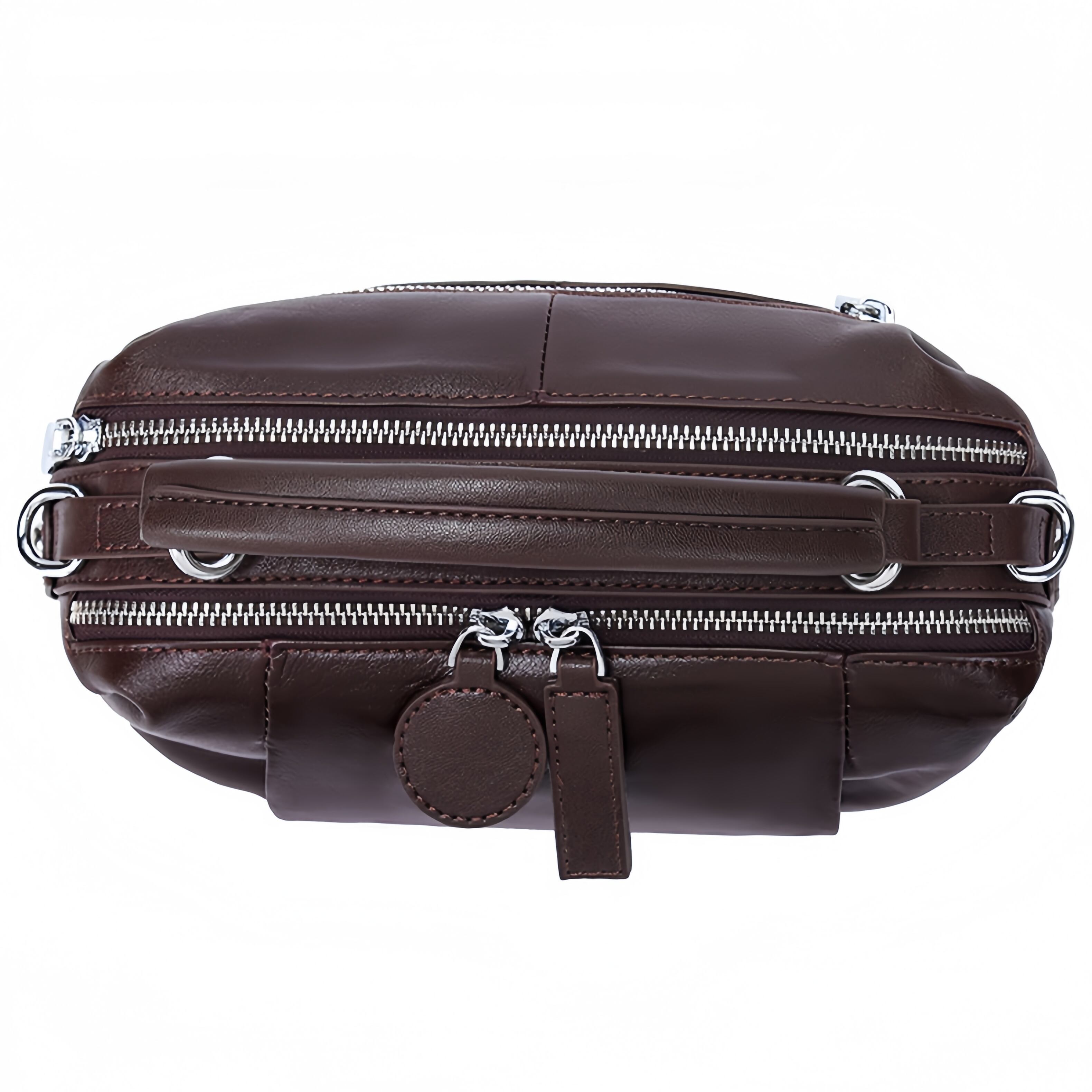このレザーバッグは、高品質の天然牛革を用い、職人が丁寧に作り上げました。素材は柔らかく、心地よい手触りで、自然な光沢を放ち、優れた感触を楽しめます。経験豊富な革細工職人が一針一糸を大切に手作業で仕上げ、シンプルでありながらレトロなデザインに、独特の品位が感じられます。