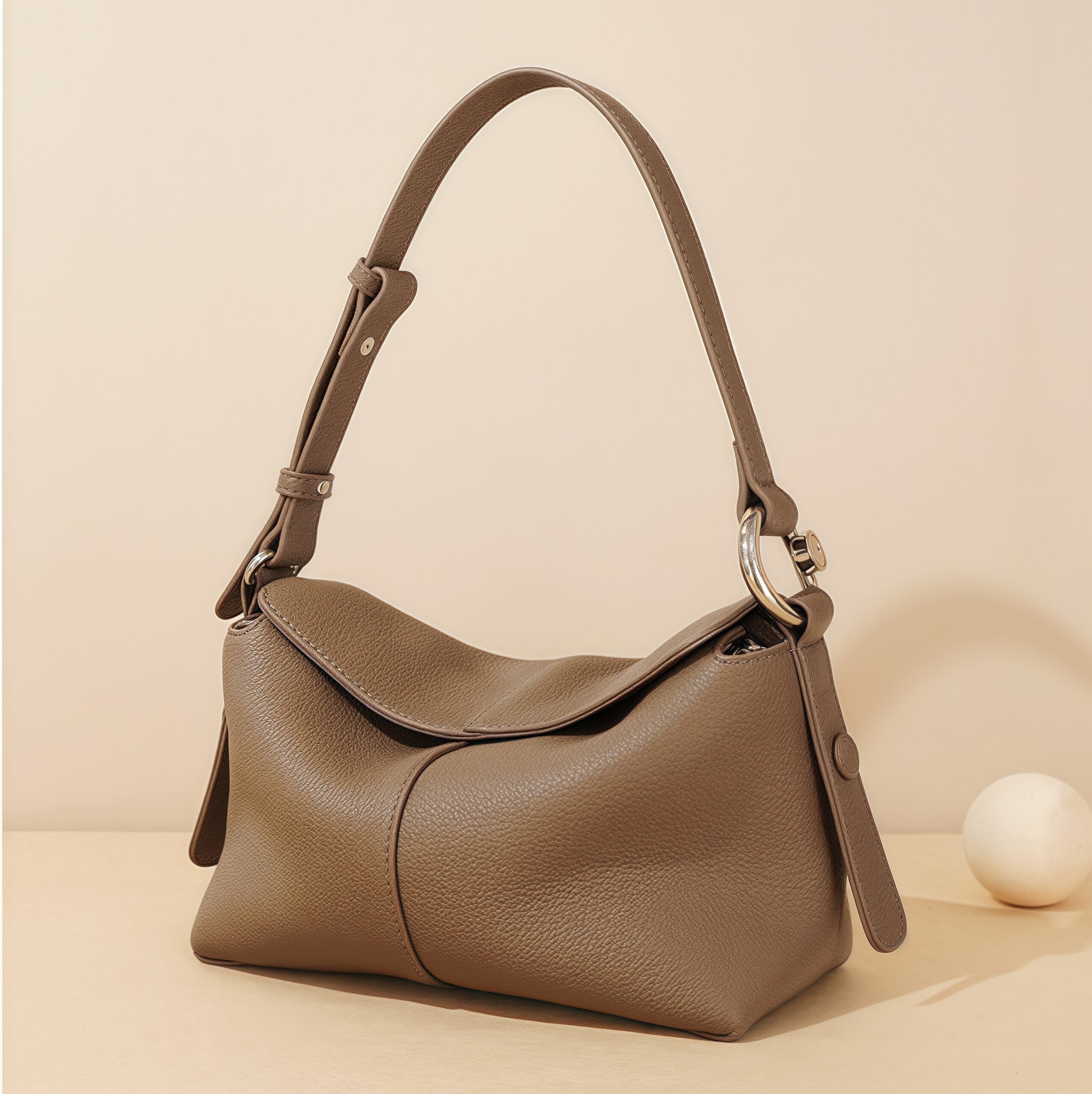 経験豊かなレザー職人の手縫いで作られ、美しい仕上がりです。レザーは厚みがありながらも柔らかく、自然な肌理感を放ち、使用するにつれ、より光沢を増していきます。このバッグは、その丁寧な作り込みと独特の魅力で、持っているだけで品位が感じられます。