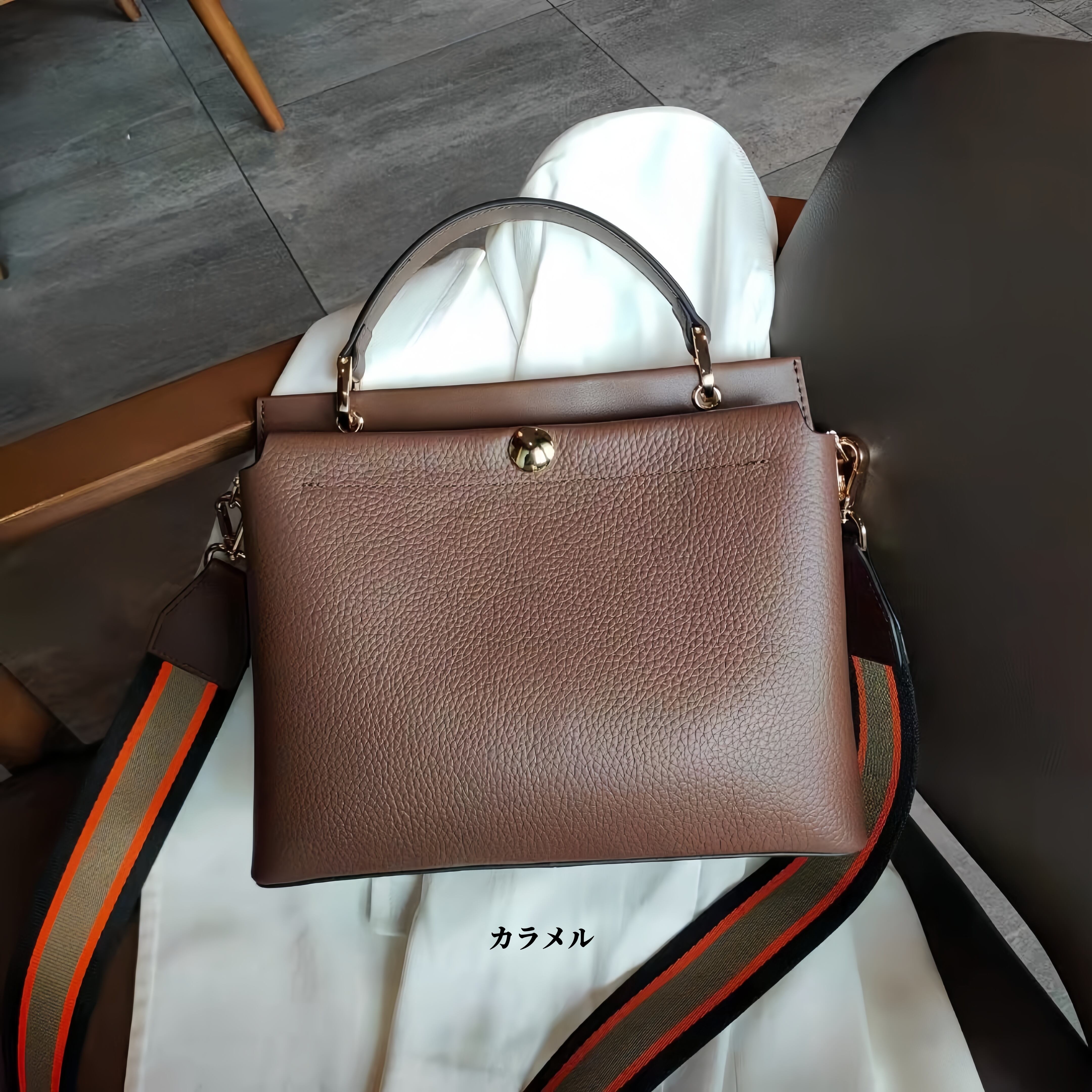 バッグには、精巧な工芸の金具アクセサリーが付いており、明るく目立つし、長持ちしやすく、色落ちに強いです。剛性のある底面と厚みのある底鋲により、バッグを置いたときでも安定して自立します。ストラップは調整可能で、自由に取り外しが可能で、手提げバッグから斜め掛けバッグ、シングルショルダーバッグへのスタイルチェンジが簡単に行えます。