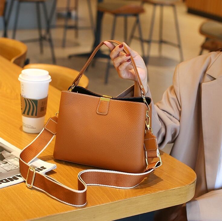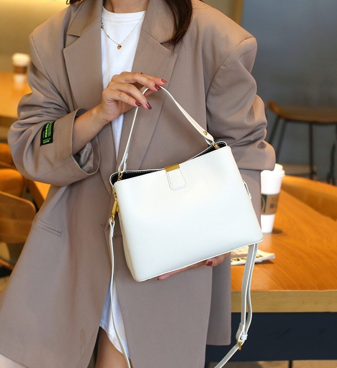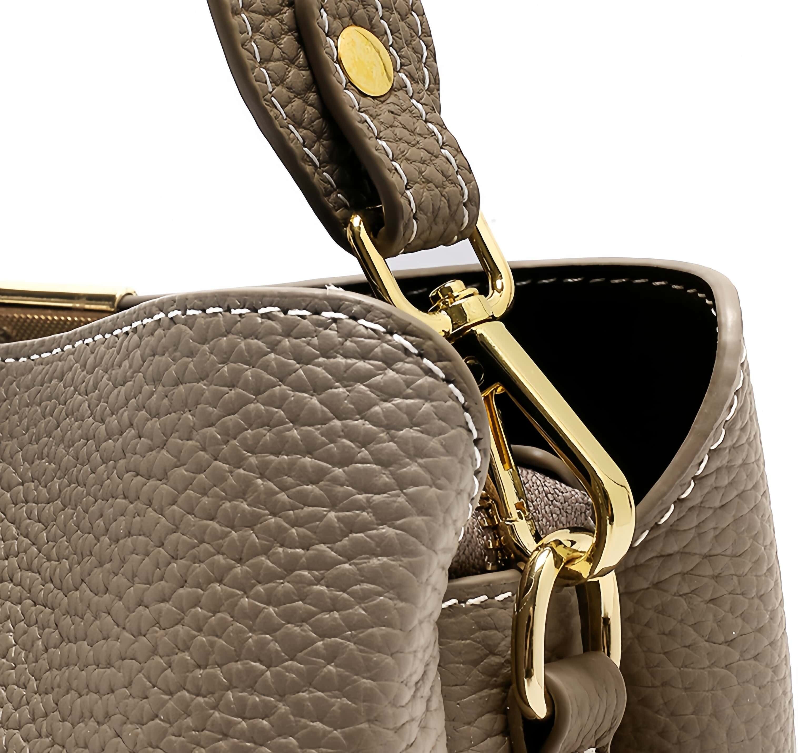 ※ ハンドバッグの表面は上質な牛革素材を使用し、柔らかく光沢のある質感で、ゴールドの高品質な合金パーツと組み合わせることで、魅力的で高貴な雰囲気がより際立ちます。