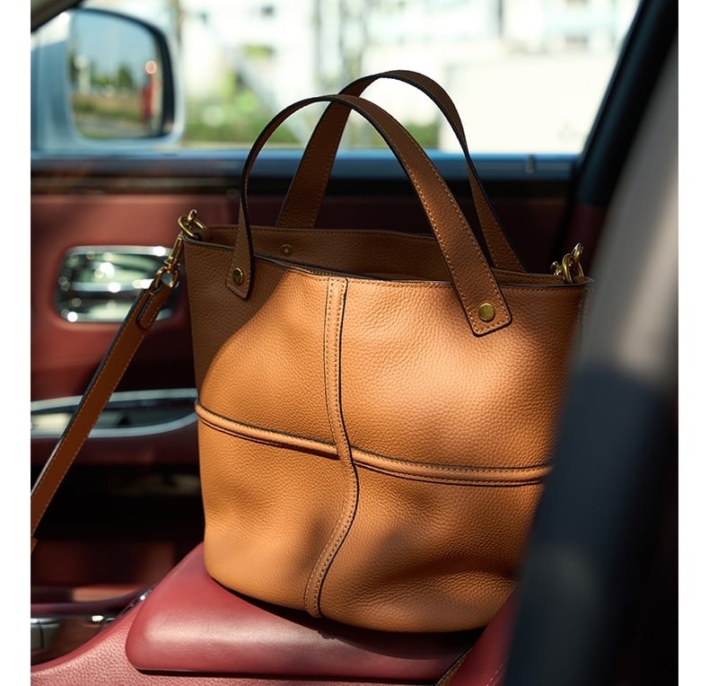 上質で厚みのある天然の柔らかい牛革を使用しており、素材には美しい紋理があります。柔らかく心地よい手触りで、使用するほどにバッグの表面には独特な自然な光沢と魅力が生まれてきます。