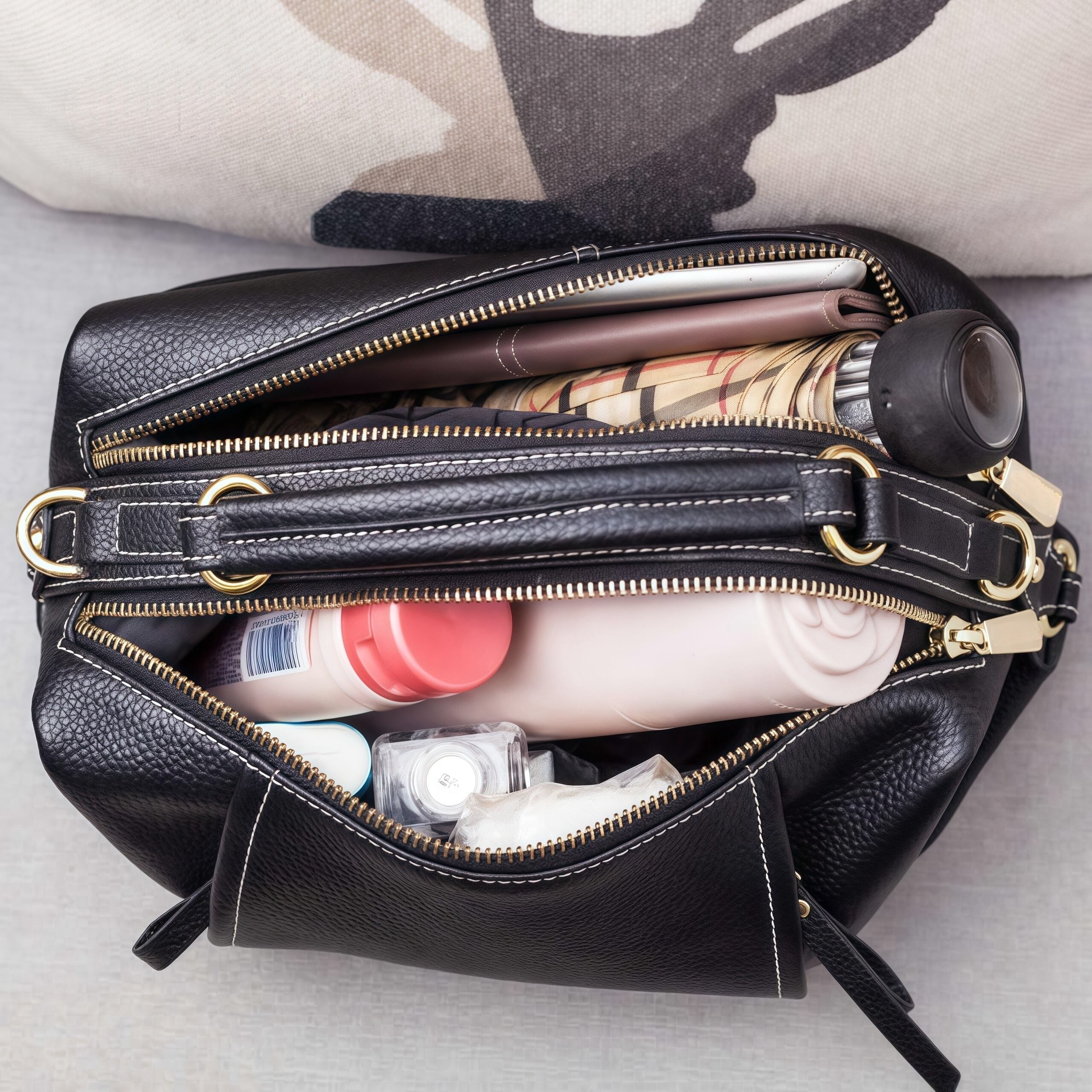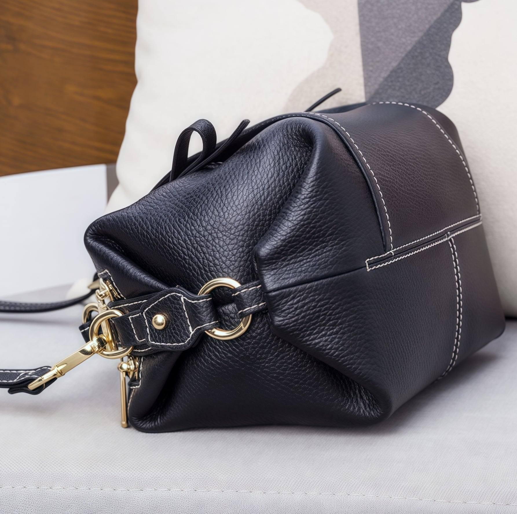 取り外し・調整可能な牛革ショルダーストラップが付いており、ハンドバッグ、クロスボディバッグ、シングルショルダーバッグなどスタイルを自由自在に変えることができます。