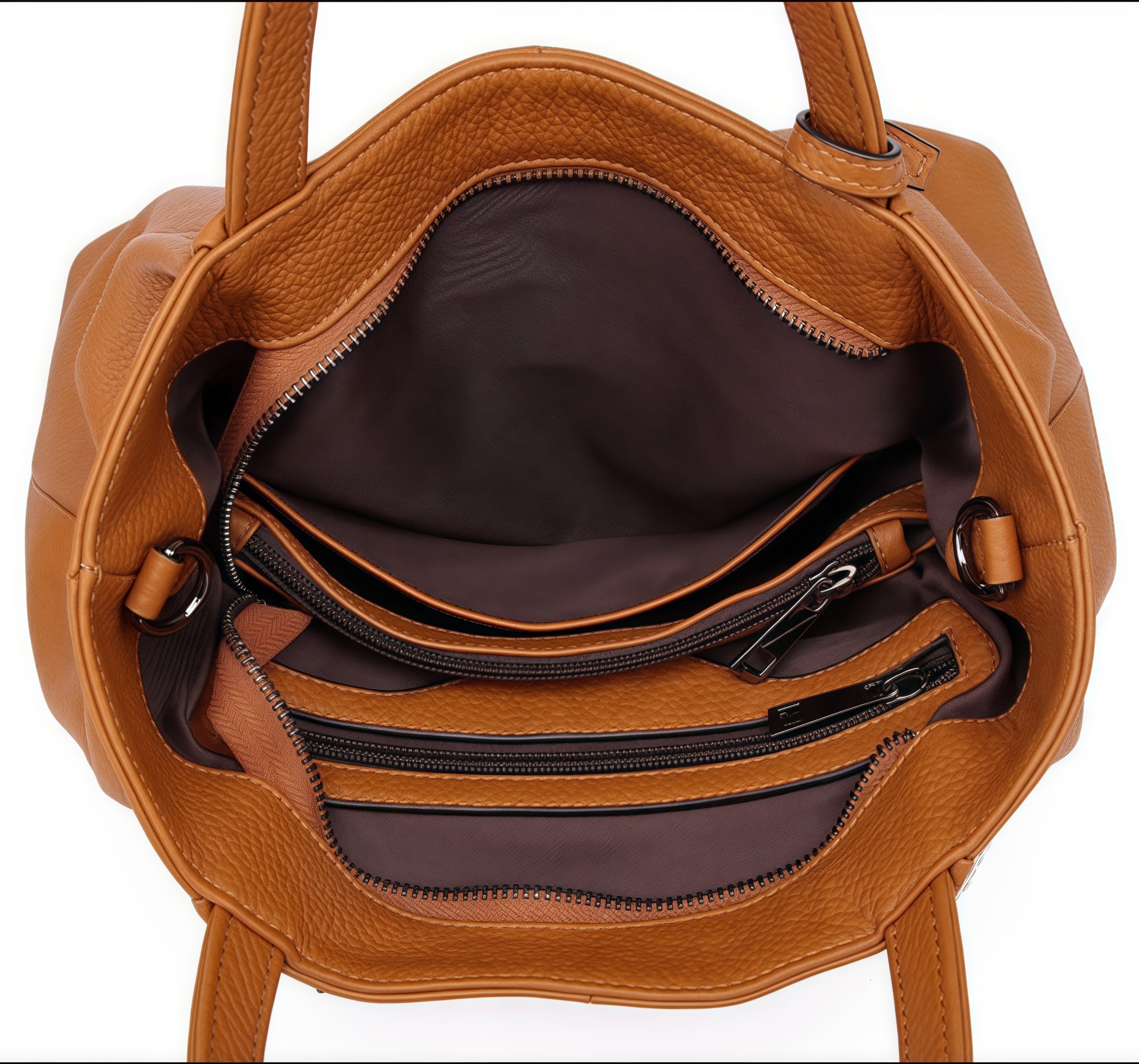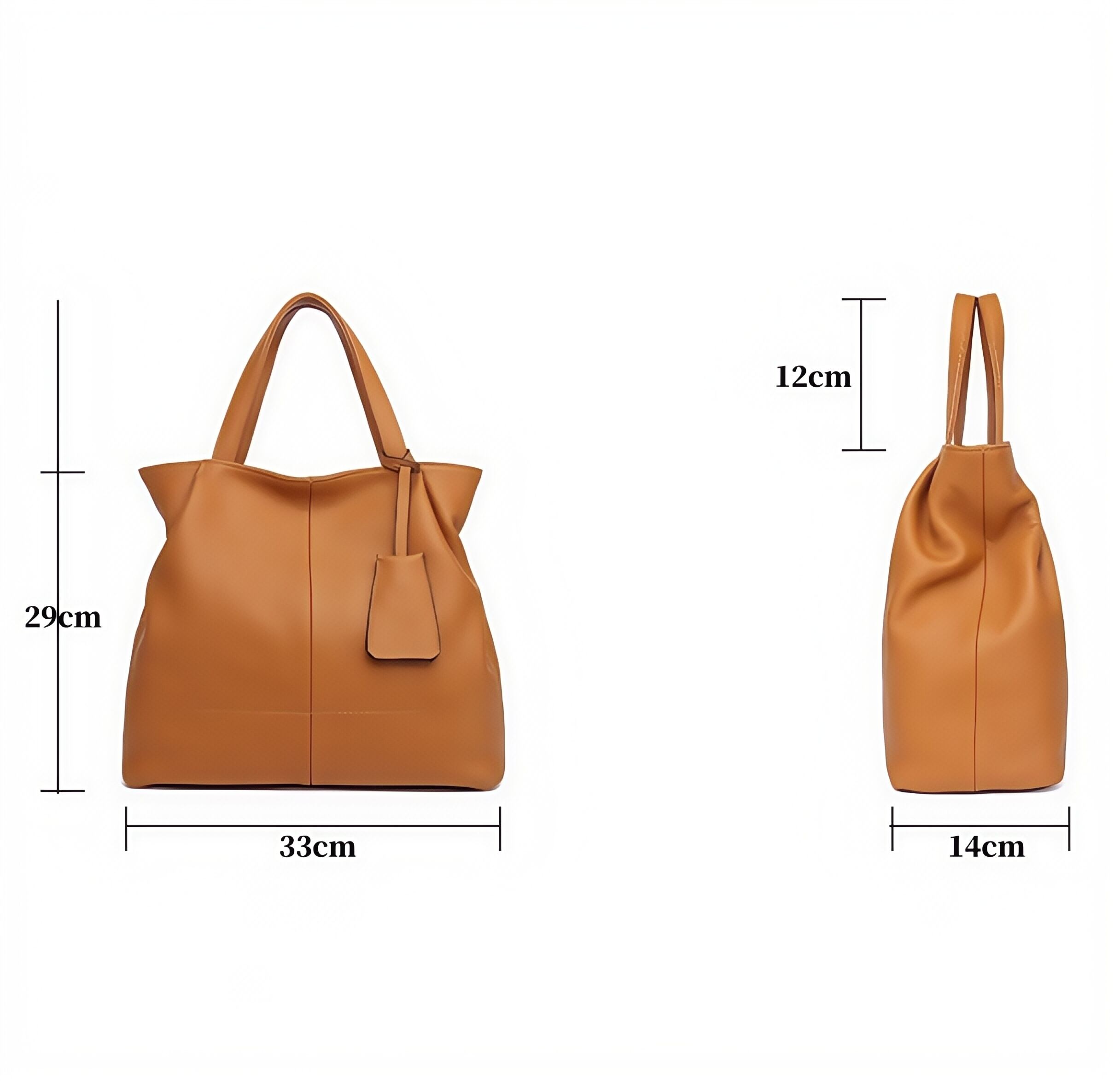 このハンドバッグは、上質な厚手な天然軟めな牛革素材を使い、手作業で作られています。メインストリームでクラシックなカラーの合計4色から選択いただけます。
