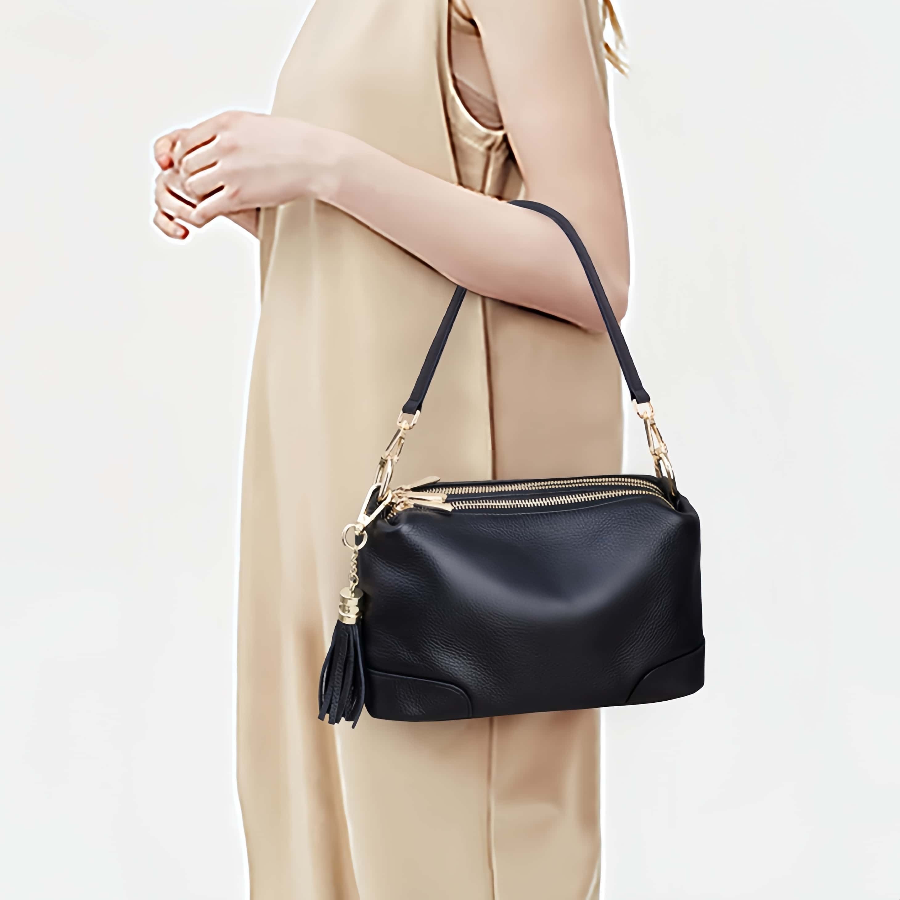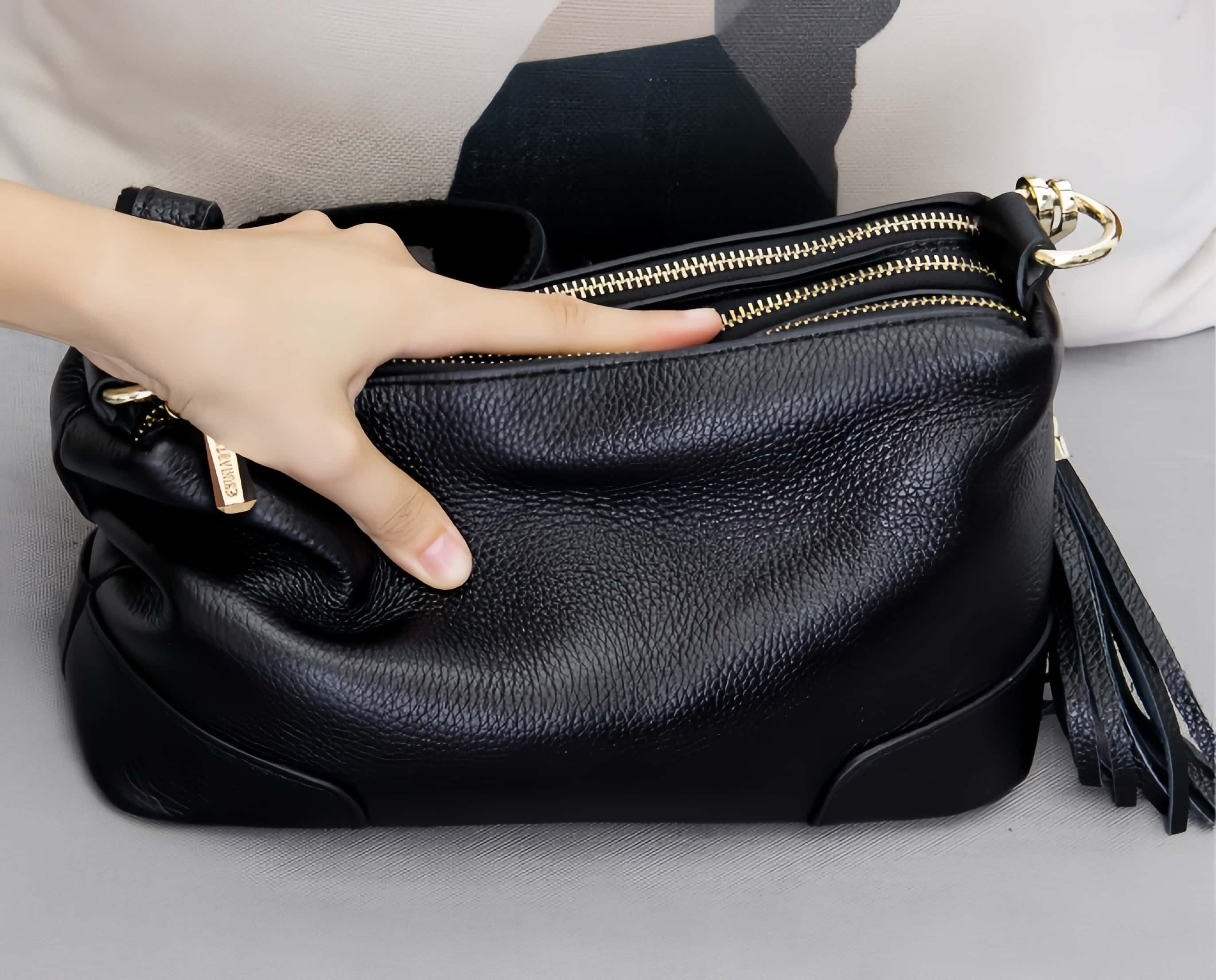 このハンドバッグは、上質な厚手な天然軟めな牛革素材を使い、手作業で作られています。メインストリームでクラシックなカラーの合計4色から選択いただけます。