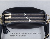 収納容量 : 携帯電話、財布、鍵、折り畳み傘、眼鏡など