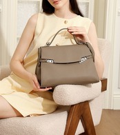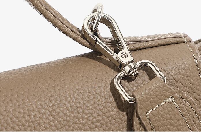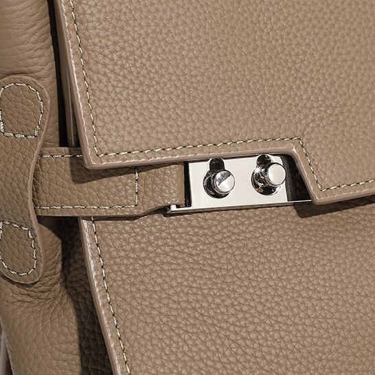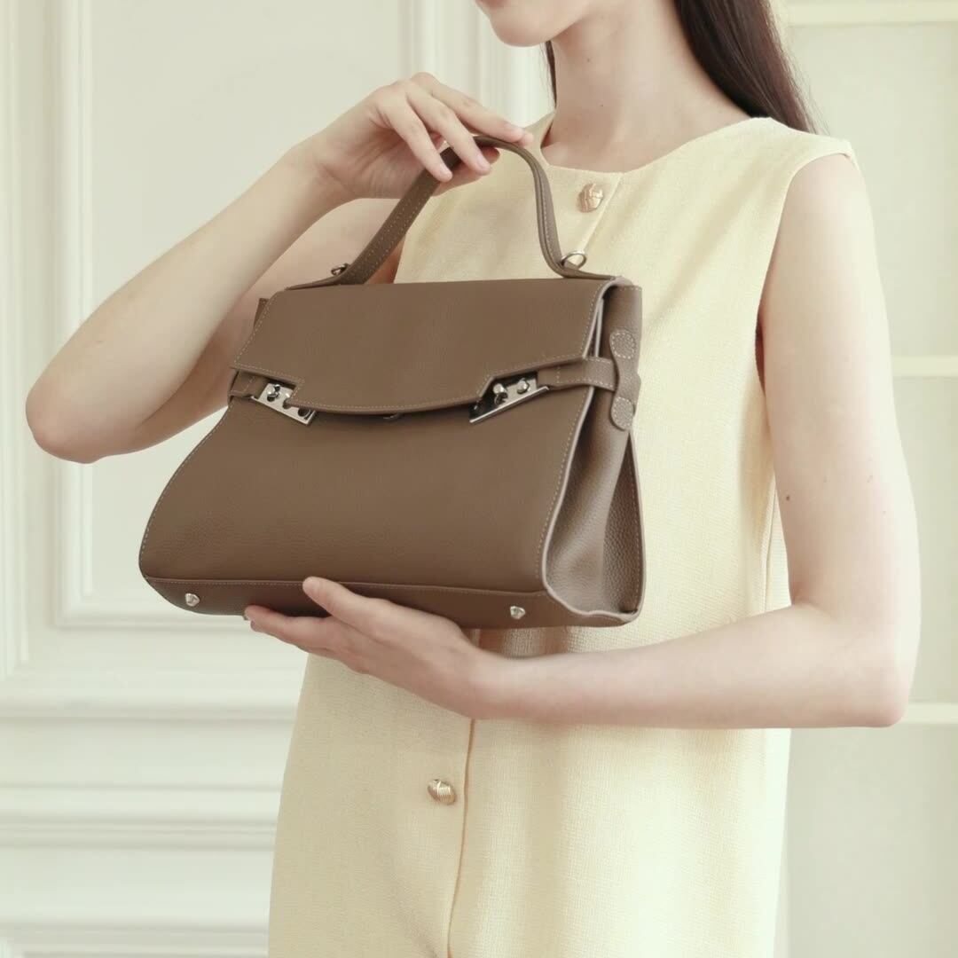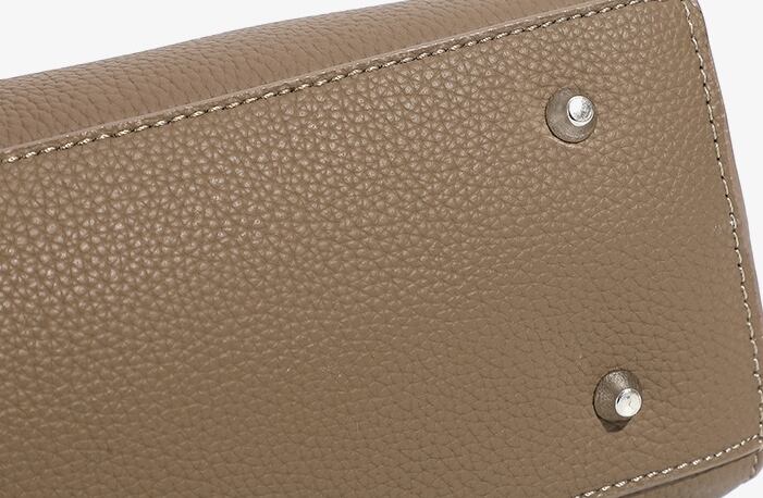 このバッグは、上質なシボ革を使用し、エレガントな雰囲気を纏ったハンドバッグです。