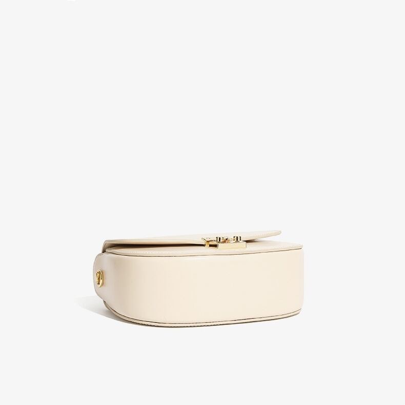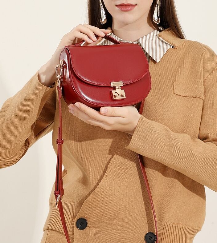 このバッグは、艶のあるなめらかな上質牛革を贅沢に使用した、クラシカルなデザインの半月型ミニショルダーバッグです。