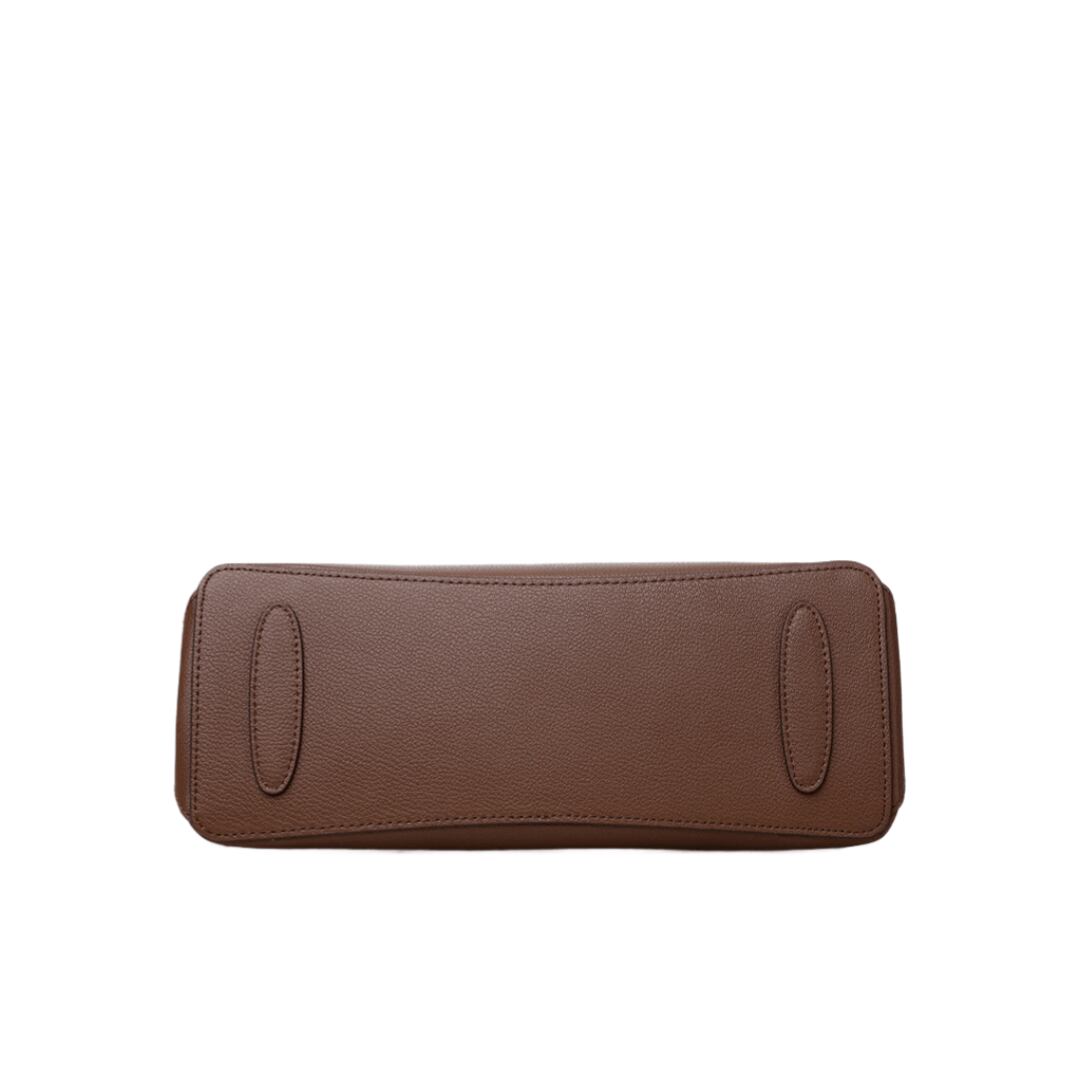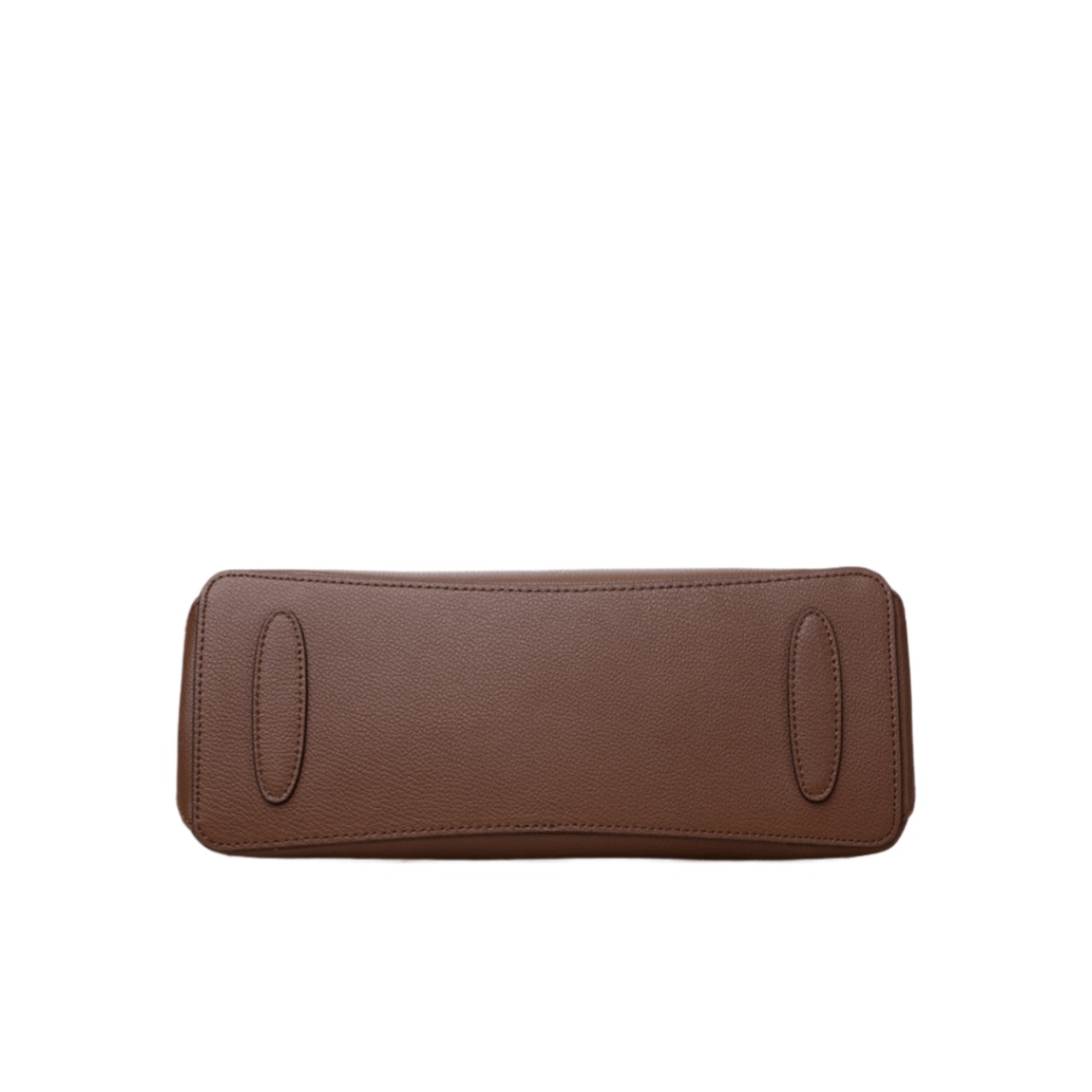 内部空間は広々としており、合理的な仕切りデザインが採用されています。メインポケット、ファスナー付き内ポケットなどが設けられ、iPad、書類、スマートフォン、化粧品など、大小様々なアイテムをスムーズに収納できます。
