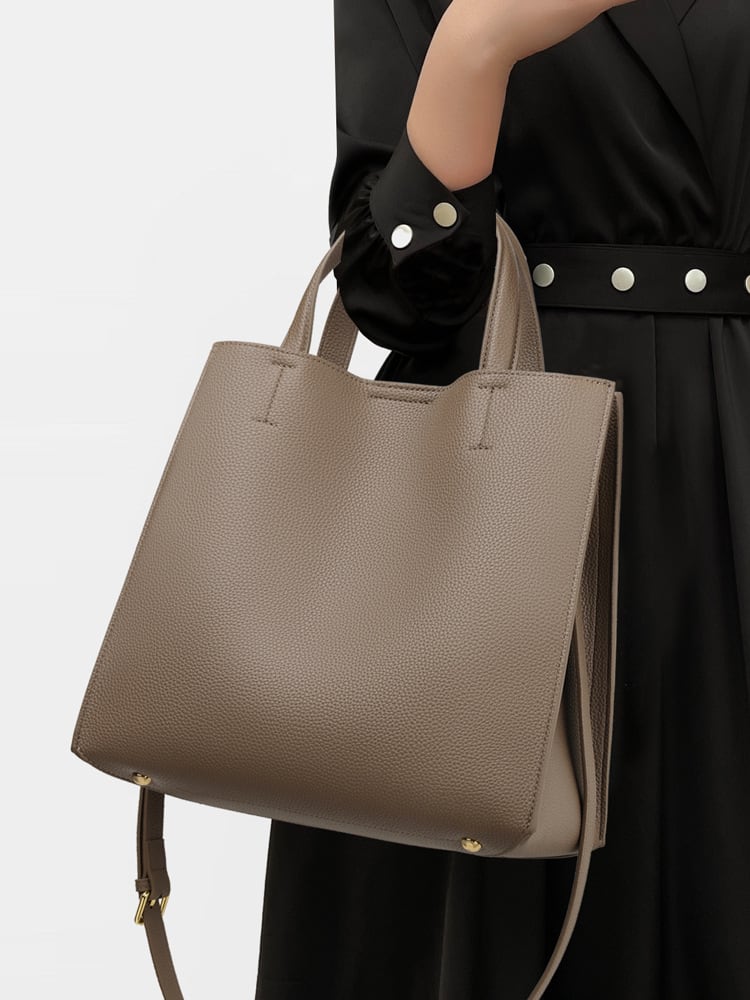 さらに長さ調節可能なロングショルダーストラップが付属し、手提げ、ワンショルダー、斜め掛けと多様な持ち方に対応し、幅広いスタイルにマッチします。