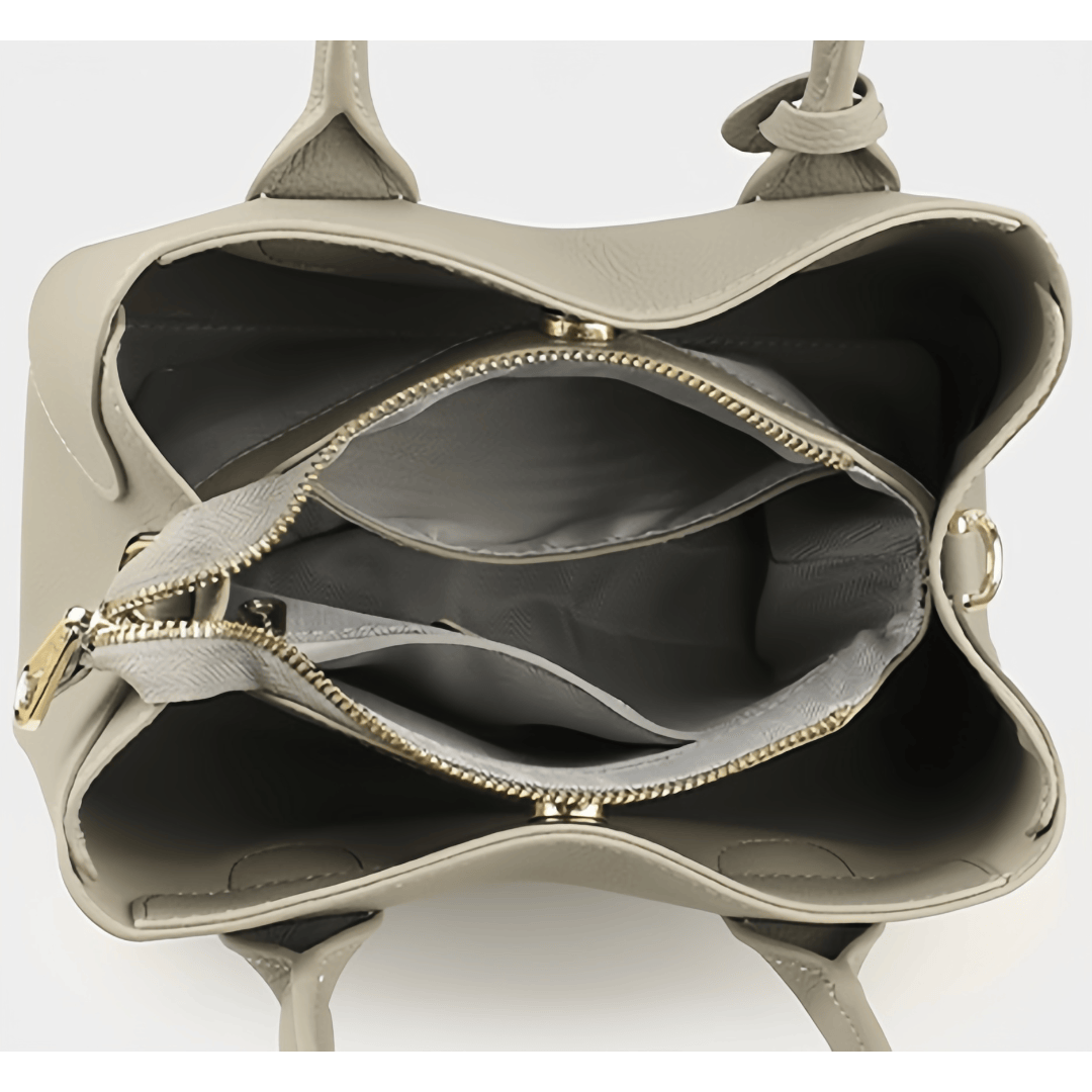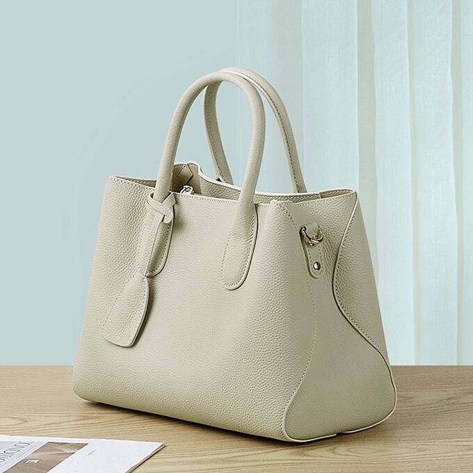 このハンドバッグ、びっしりとした厚質な牛革でできているんです。触るとほんのり柔らかく、でもしっかりとした質感があって、そのうえ自然な艶が漂っていて、本当に高級感がすごいですよ。