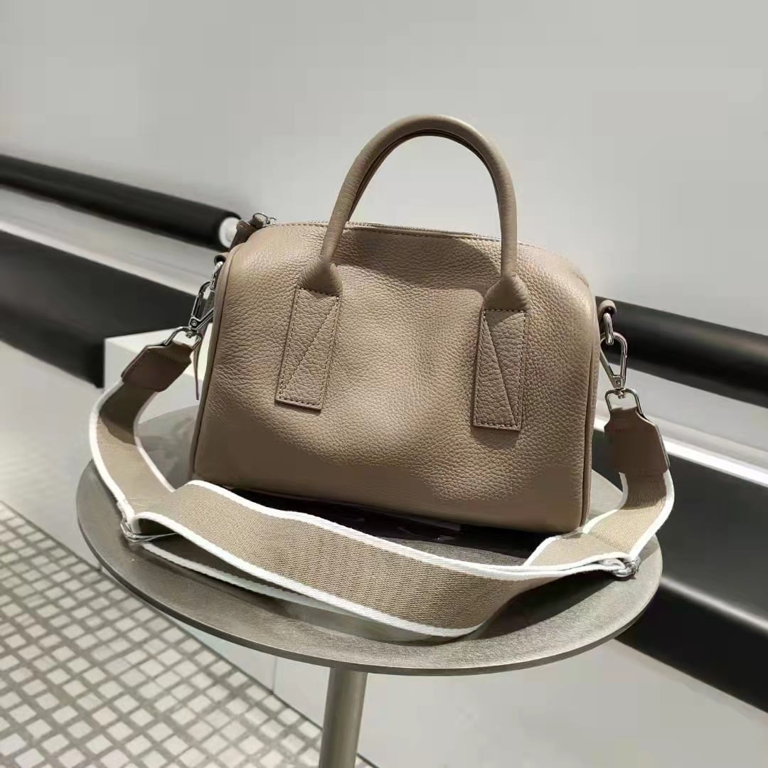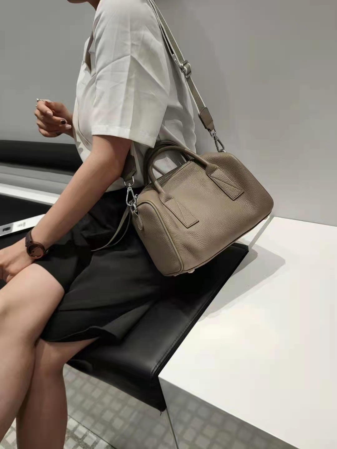 バッグの形はクラシックなボストン型。丸みを帯びたふっくらとしたラインが、レトロな趣を醸し出し、シンプルながらも高級感が漂います。