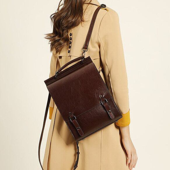 このヴィンテージスタイルの牛革リュックは、イギリスのスクールスタイルからインスパイアされたデザインです。