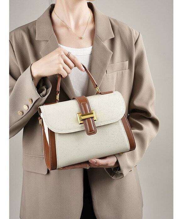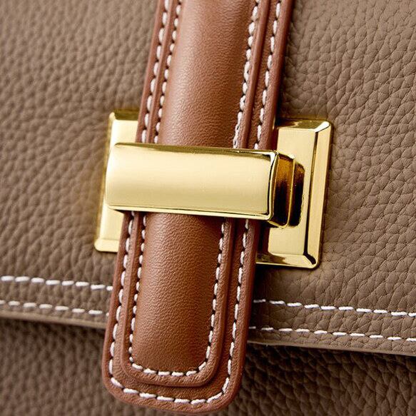 このバッグは、厳選されたトップレイヤー牛革を使用しています。手触りが柔らかく、光沢が美しいです。革の紋理がはっきりとしており、きめ細やかな輝きがあります。デザインの線がはっきりしており、非常にスタイリッシュです、女性のスーツに似合うビジネスバッグ。