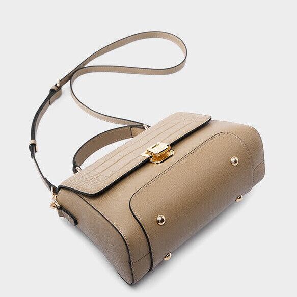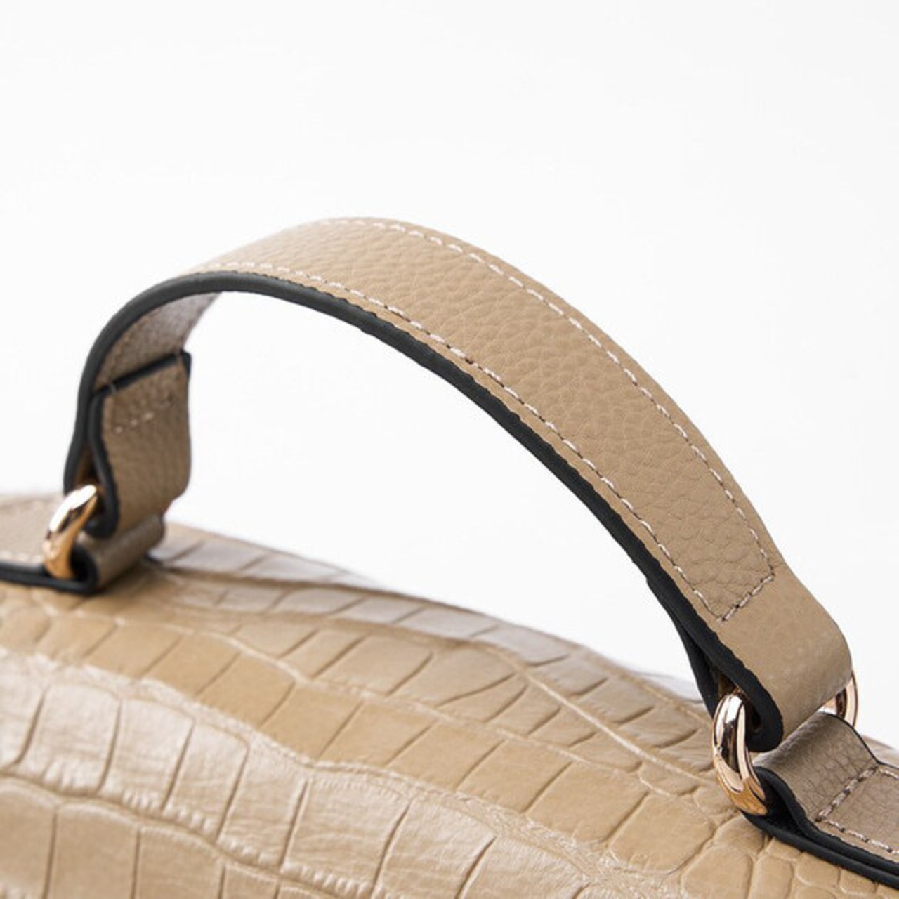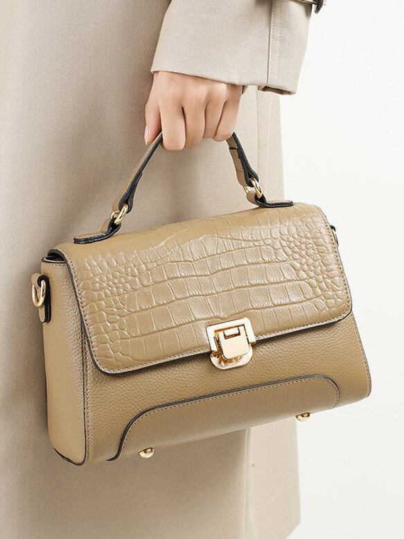 このバッグは、厳選されたトップレイヤー牛革を使用しています。手触りが柔らかく、光沢が美しいです。革の紋理がはっきりとしており、きめ細やかな輝きがあります。デザインの線がはっきりしており、非常にスタイリッシュです、女性のスーツに似合うビジネスバッグ。