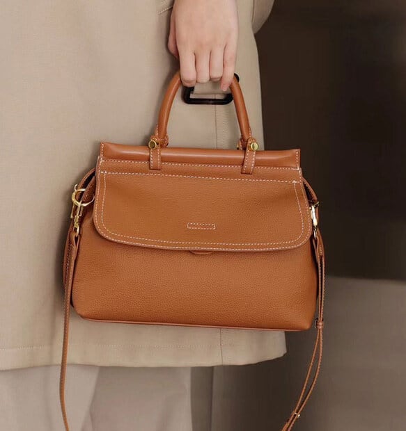※欧米風のレトロなレディース用の本革バッグ、持ち手と斜めがけの両方が可能です。四季を通してお使いいただけます。