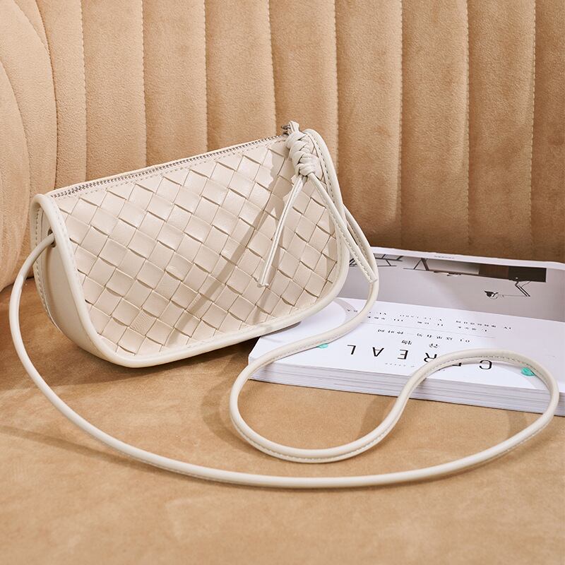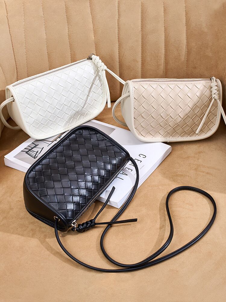 植物タンニンで仕上げたレザーを使った編み斜めバッグです。高品質な合金パーツが特徴で、丈夫で長持ちします。柔らかい肩掛けストラップは、快適で使いやすく、荷重にも強いんです。